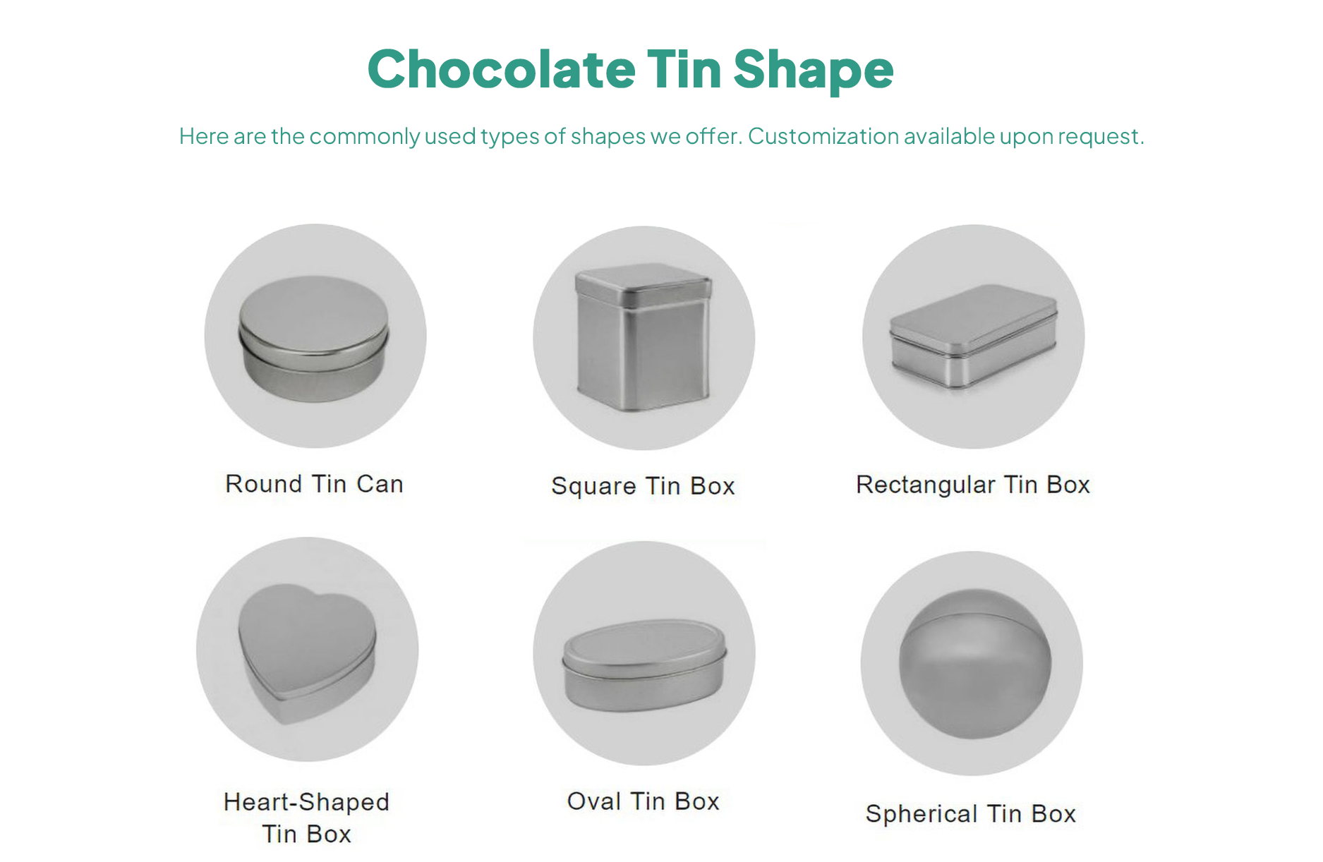 | Tin Shape | Size | Thickness | Lid Type | Material |
